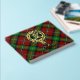 Clan Boyd crest badge surrounded by a strap and buckle over tartan background. Custom front, back and spine text.