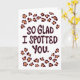 Our boyfriend's Valentine's Day Card, with the words 'So Glad I Spotted You,' is an ideal way to express your affection for your boyfriend. With its original lettering design and playful pattern of leopard spots, this card is sure to make your loved one feel cherished and valued. Its modern style is perfect for him. You can personalise the message, adding a heartfelt touch to your sentiment.