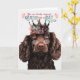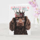 This Boykin Spaniels curly chocolate locks look delightful with a floral crown and glasses on this birthday card fit for a queen.
