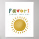This adorable 1st birthday favour sign features a sweet sun-themed design to celebrate your little boy’s first trip around the sun! Set on a soft blue background, it includes the text “Favours, please take one” and can be personalised with your child’s name. Printed on value matte paper for a smooth, budget-friendly finish. The perfect cosmic touch for your baby boy’s milestone birthday party!
