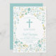 Boy's Baptism Invitation Beautiful Cross, Flowers
