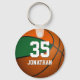 This boys' basketball keychain features a simple basketball graphic with his orange and green school colours on two of the basketball's panels and easily customisable player name and large jersey number in a sporty, varsity letter style font - by katz_d_zynes
