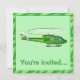 This birthday part invitation is decorated by with a helicopter. For matching items type "penguincornerstore helicopter" into the Zazzle search bar.