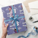 Birthday boys wrapping paper in purple blue, black, grey and white musical rockstar guitarist design. Personalise this boys star birthday paper with your name and age. Currently reads Happy Birthday Seth 8 today. Uniquely illustrated and designed by Sarah Trett.