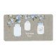 Burlap mason jar water bottle label with pretty blue cherry blossom branch and mason jars on a burlap background. These rustic burlap mason jar baby shower water bottle labels are easily customised for your event with your text in the font style and colour of your choice.