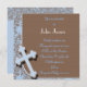 BOYS BLUE INVITATION WITH CROSS ANS DAMASK DESIGN