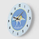 Boys Blue Watercolor Dinosaur and Name Kids Large Clock