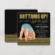 Cute black and gold glitter boys bottom up sip and see invitation. This gold chevron and adorable baby boy bottoms up baby shower invitation is easily customised for your event by adding your details in the font style and colour, and wording of your choice. You can also change the background colour on this adorable boys sip and see invitation. You can also delete the sip and see to add your own text.