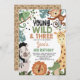 Boys Brown Green Young Wild Three 3rd Birthday Invitation