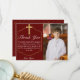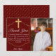 Boys Burgundy Gold Cross 1st Communion Thank You Card