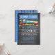 This boy's chalkboard train birthday invitation features a cute yellow, red, green and light blue train and a blue banner. The background is on a scanned chalkboard image. The design also includes a few decorative elements such as stars and some simple dividers. This birthday invitation is suitable as a boy's 1st birthday party invitation or 2nd birthday party invitation. It's ready for you to personalize and is ideal if you are having a train theme birthday party and like chalkboard invitations.