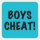 Humour text sayings T-shirts, mugs, cards, stickers, buttons, magnets, key chains, notebooks, dry erase boards, bibs, kitchen towels, pillows, and more with black or white text that reads Boys Cheat! You can easily change the background colour to whatever colour you prefer!
