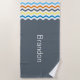 Boys Chevron Grey Blue Orange Pattern Personalised Beach Towel