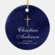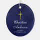 Boys Christening Baptism Blue Ceramic Ornament. This ceramic ornament in navy blue and gold, embellished with a faux gold glitter cross, is the ideal memento for your child's baptism, christening, or first communion. Matching items available.