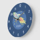 Boys Colourful Rocket Ship Space and Name Nursery Large Clock