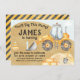 Cute boy's watercolor construction themed birthday invitation featuring an excavator, some bricks, spade and earth. The age is editable so this construction birthday invitation can be used for various ages.
