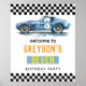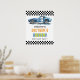 Boys Cool Blue Racing Car Kids Birthday Poster