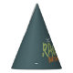 This cool and modern boys birthday party hat design features a t-Rex dinosaur skeleton illustration. The hat can be personalised with your kids name - the perfect dinosaur fossil dig themed addition to your little one’s party.