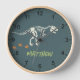 This cool and modern boys clock features a t-Rex dinosaur skeleton. The clock can be personalised with your child’s name, and has clear readable numbers. The perfect prehistoric dinosaur dig themed decor for your kids room or nursery.