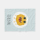 This cute and modern blue custom kids fleece blanket design features a yellow monster alien design. There is also space for you to add your boy's name in a simple and minimalist font. The perfect trendy monster-themed gift for any magical creature enthusiast!