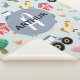 This cute blue kids sherpa blanket features a farm animal cartoon pattern, with a tractor, barn, pigs, horses, chickens, rabbits, and flowers, and can be personalised with your boys name and monogram. The perfect agriculture-themed addition to your kids room or baby nursery.