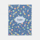 Boys Cute Blue Rocket Ship Space Pattern and Name Fleece Blanket