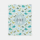 This cute and modern monogrammed kids blanket features a blue dinosaur cartoon pattern, with a t-rex, stegosaurus, and Jurassic jungle plants, and can be personalised with your boy's name and initial. The perfect customisable jungle dinosaur-themed gift for any dino lover.