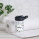 This cute blue custom kids water bottle design features a blue cartoon transport pattern, with cars, pickup trucks, trains, aeroplanes, diggers, tractors, and helicopters. There is also space for you to add your boys name and monogram in a beautiful font. The perfect transport-themed addition to your child's back-to-school or kindergarten supplies, or as a gift for any car/tractor/aeroplane lover.