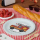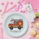 This cute and modern kids birthday paper plate design features a fireman and fire engine truck cartoon, and can be personalised with your boys name. The perfect blue firefighter-themed addition to your toddler's birthday.
