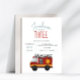 This cute and modern boys birthday invitation features a fire engine truck cartoon, with a matching blue firefighter pattern on the reverse, and can be personalised with the details necessary for your child's party. The perfect fireman-themed invitations for your toddler's birthday event.