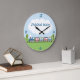 This boys wall clock features a cute blue, yellow and red train in a country landscape. Same design invitations, birthday cards and more are available at the store. This boy's train wall clock is ready to be personalised and is suitable for a little boy's nursery or bedroom.