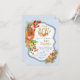 Deer Antler baby shower invitation with watercolor flowers and gold glitter and foil accent pieces on a blue and white background. This is a printed design with no real glitter, etc.