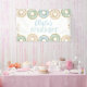 Doughnut Grow Up 1st Birthday Banner. The perfect backdrop for your little girl's Doughnut themed first birthday party. Our green, blue and beige doughnuts with gold details make the cutest party decor. Check out the matching items!