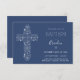 This 3.5" x 5" (small) blue baptism or christening invitation features a white intricate illustrated cross. Perfect for a baby boy's special religious occasion, this invite can be customised for your event.