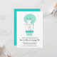 A cartoon giraffe in a turquoise blue and yellow striped hot air balloon is a fun way to invite friends and family to celebrate your little boy's first birthday or any year. Also available in PINK. MATCHING items in our store.