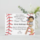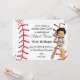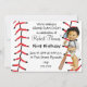 Boy's First Birthday Party Invitation with little boy in baseball uniform and baseball bat.