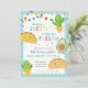 Celebrate your son's birthday with these ever so cute 1st fiesta invitations! This adorable design features taco, cactus and avocado characters with a blue border background. Wording reads "No time for a Siesta - It's [your child's name] first fiesta!