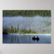 Boys fishing from canoe with mist in poster