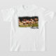 100% cotton so perfect for summer, It is a nicely designed t-shirt, the fabric is soft and the seams finished well, the body of the t shirt has no side seams. I bought a medium size for my two grandsons, aged 9 and 8 it will be slightly big on them but I would rather that than too small