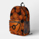 This fun and sporty basketball backpack features a random pattern of varied size basketballs turned every which way on a black background - customise with basketball player's monogram overlying the realistic image of an abstractly oversized basketball on the front pocket - by katz_d_zynes