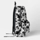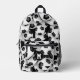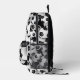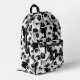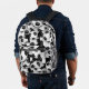 This fun and sporty soccer backpack features a random pattern of varied size soccer balls turned every which way on a black background - customise with the soccer player's monogram - by katz_d_zynes