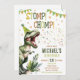 Boys Green Stomp Chomp Roar Dinosaur 1st Birthday Invitation
