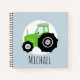 Boy's Green Tractor Pattern and Name Kids School Notebook