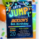 Let's JUMP! Personalise your own jump party trampoline park birthday invitations for boys.