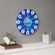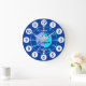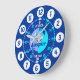 Colourful boys graphic wall clock colour coded to help assist your child to read a clock. This colourful teaching aid includes minutes and hours and past and to making child's play of telling the time. Clock colour coded in blue, aqua and white. Clock can be customised with your name of choice. Currently reads Jasper and has an original watercolor painting of a shark swimming towards you. Original design and whimsy shark illustration by www.mylittleeden.com
