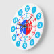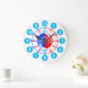 White, blue and red boys graphic wall clock colour coded to help assist your child to read a clock. This colourful teaching aid includes minutes and hours and colour coded past and to's making child's play of telling the time. Designed exclusively by Sarah Trett. A great addition to a little boy's bedroom who is just learning to read a clock face.