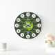 Boys graphic learn to tell the time green wall clock colour coded to help assist your child to read a clock face. This teaching aid includes minutes and hours and past detail and to make child's play of telling the time. Clock colour coded in shades of green and featuring a little white tractor and space for your own name. Currently reads Samuel. Would make a great personalised Christmas or Birthday gift. Original design by Sarah Trett for www.mylittleeden.com