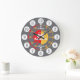 Colourful boys graphic wall clock colour coded to help assist your child to read a clock. This colourful teaching aid includes minutes and hours and past and to making child's play of telling the time. Clock colour coded in grey red, yellow and white featuring a little white tractor and your name. Clock can be customised with your name of choice. Currently reads Samuel. Would make a great personalised Christmas or Birthday gift. ">www.sarahtrett.