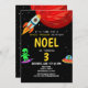 This cute and modern Space-themed kids birthday invitation design features a alien black cartoon design, with a rocket, UFO, alien, planet, astronaut and stars. The invite can be personalised with your boys name and other details necessary for your party. The perfect Space-themed addition to your child's birthday party. This invitation is set for a 3rd birthday, but this is easy to edit under 'personalise this template' for a different birthday!