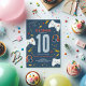 This cool and modern video game-themed kids birthday invitation design features a blue gaming cartoon design, with a controller, headset, health hearts, lightening bolts, coins, and stars. The invite can be personalised with your boys name and other details necessary for your party. The perfect gamer-themed addition to your child's birthday party. This invitation is set for a 10th birthday, but this is easy to edit under 'personalise this template' for a different birthday! The wording “achieved level” is used to continue the gaming motif.